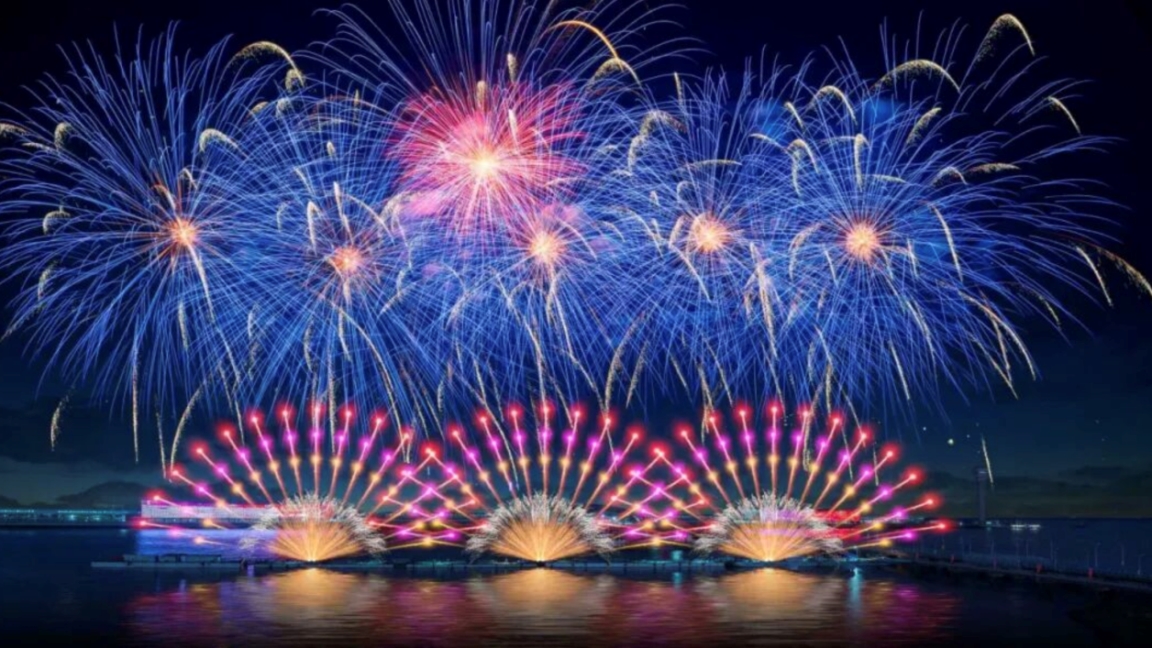 这场限定版烟花秀规模与氛围均为节日特别编排,包括常规段落和国庆专属彩蛋(约5分钟追加演出),融入 “天地共庆” 元素,结尾金色瀑布烟花呼应节日主题。